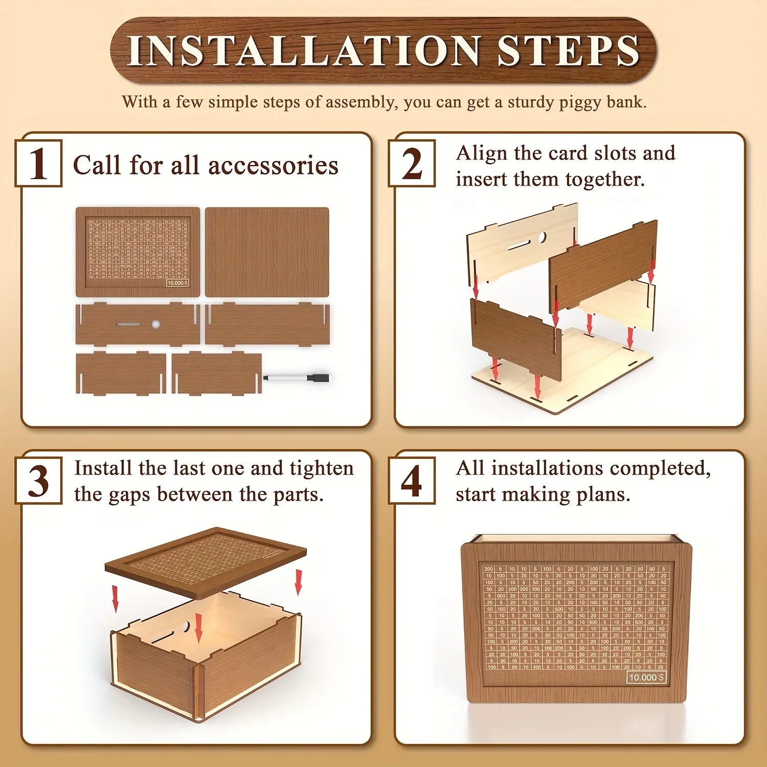 Our Smart Wooden Money Bank changes your financial life, turning saving from a chore into an enjoyable and motivating activity. Experience the joy of watching your savings grow, and feel empowered as you reach your goals.
